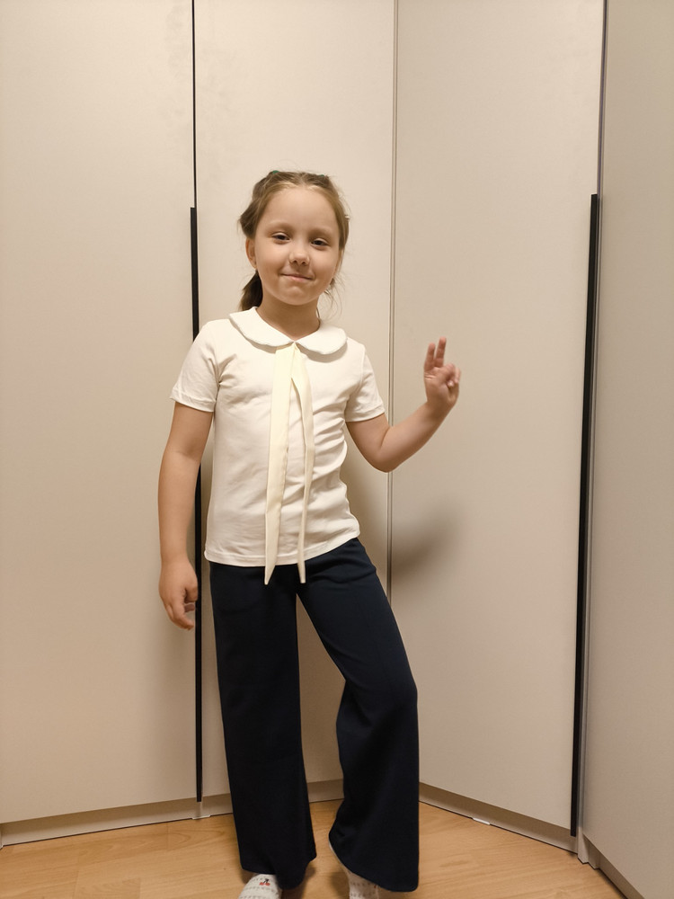 Школьная трикотажная блузка для девочки с атласным галстуком-бантом — стильная и удобная модель, идеально подходящая для повседневной носки в школу и для торжественных случаев. Она сочетает в себе классическую строгость и нежные декоративные детали, благодаря чему создаёт элегантный и запоминающийся образ.