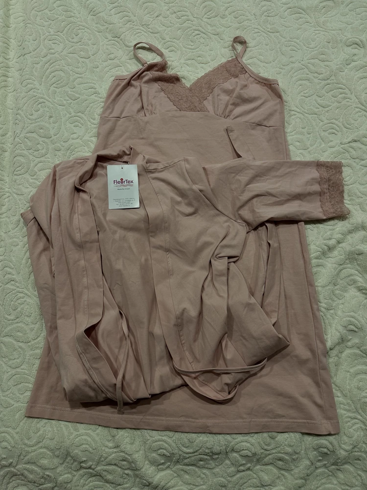 Практичный и невероятно удобный комплект в роддом для беременных и кормящих из 100% Хлопка Премиум, который состоит из ночной сороки и халата с запахом. Сорочка - оптимальной длины, выполнена из однотонной хлопковой ткани Премиального качества, на бретелях с регуляторами из декоративной резинки. Верх изделия разработан для максимального комфорта во время кормления грудью. Крайне привлекательно смотрится декоративная отделка кружевом. Халат с запахом, удобным поясом, боковыми карманами и рукавом 3/4. Длина - ниже колена. По низу рукавов - отделка эластичным кружевом. В боковом шве 3 петли для регулировки высоты пояса. Такой комплект, состоящий из халата и сорочки, ни в коем случае не останется без внимания. Вы сможете носить его и после беременности, ведь он невероятно удобный и универсальный. Характеристики: 100% хлопковая ткань Премиум; Обработка декоративным эластичным кружевом; Оптимальная длина изделий; Бретели с регуляторами; Комфорт во время кормления; Боковые карманы; 3 уровня регулировки высоты пояс